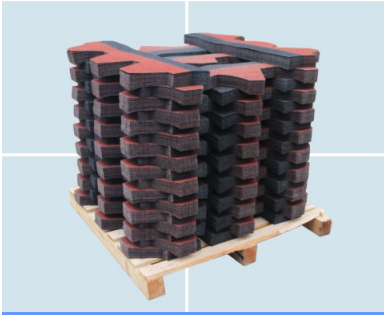 不同顏色,不同等級(jí)的產(chǎn)品必須分開(kāi)存放好;油氈瓦應(yīng)平放、高度不得超過(guò)15捆,應(yīng)避免雨淋日曬,并注意通風(fēng)。運(yùn)輸過(guò)程中油氈瓦必須平放,必要時(shí)加蓋藍(lán)布。